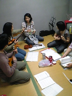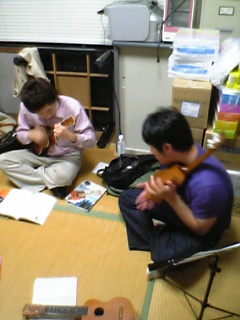みなさんいかがお過ごしですか~? ウクレレコンサートに向けて今日はファンキータイムで練習中(^O^) ハナレグミの「音タイム」を重点的に!房さん&犬っちが教えあいながら弾いてます。