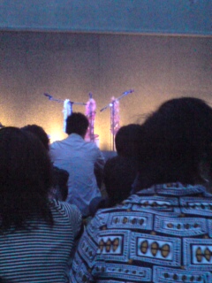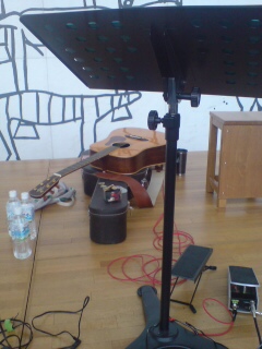 サブてついてた人が曽我大穂って言うミュージシャンで、ここでは主にブルースハープとピアニカ、カセットテープの効果音、手の平サイズの木魚みたいなカスタネットらしきものや、座ってた理科室の椅子の側面をカホンがわりに叩いてたよ。