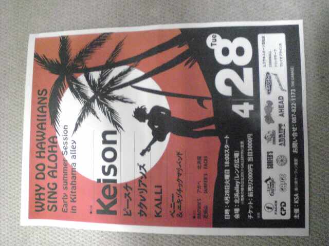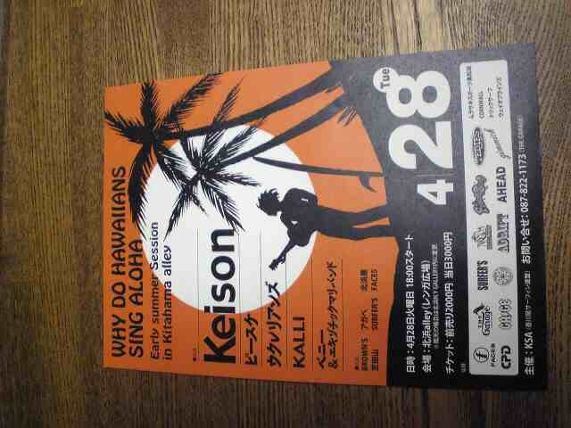 実は4月28日(火)に高松の北浜alleyで行われるKeisonのLiveの前座に僕らUKULERIANSが入る事が決まってるんです☆
