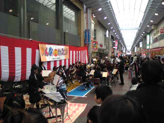 お店のある岸和田駅に着くと、イベントをしてて、中学生の吹奏楽部や、ジャズ、フュージョン系のバンドが駅前や商店街で演奏していました。