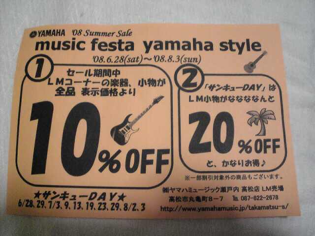 ヤマハはSALEをしてて 3 9 が付く日は20%OFF!
