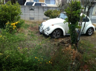 ここから壁を壊し、車の横の木を二本植えかえました。