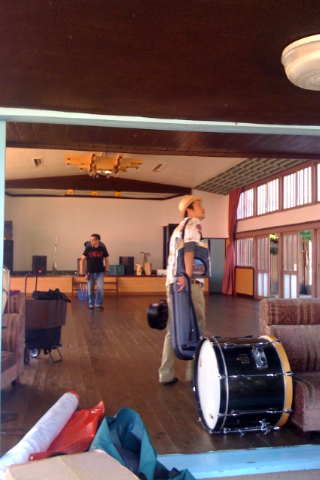 小学校の体育館みたいな味のある建物で、いい雰囲気の中、オープニングアクトで演奏しました。